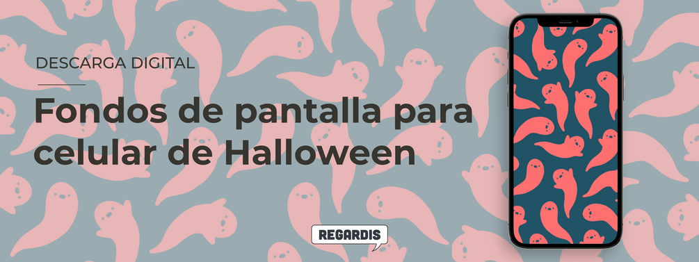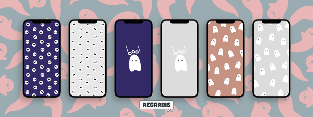 Lindos fondos de pantalla para celular de Halloween. Encontrarás fondos de fantasmitas, calaveras de distintas tonalidades: gris, morado, azul y naranja/marrón. ¡Perfectos para Halloween!